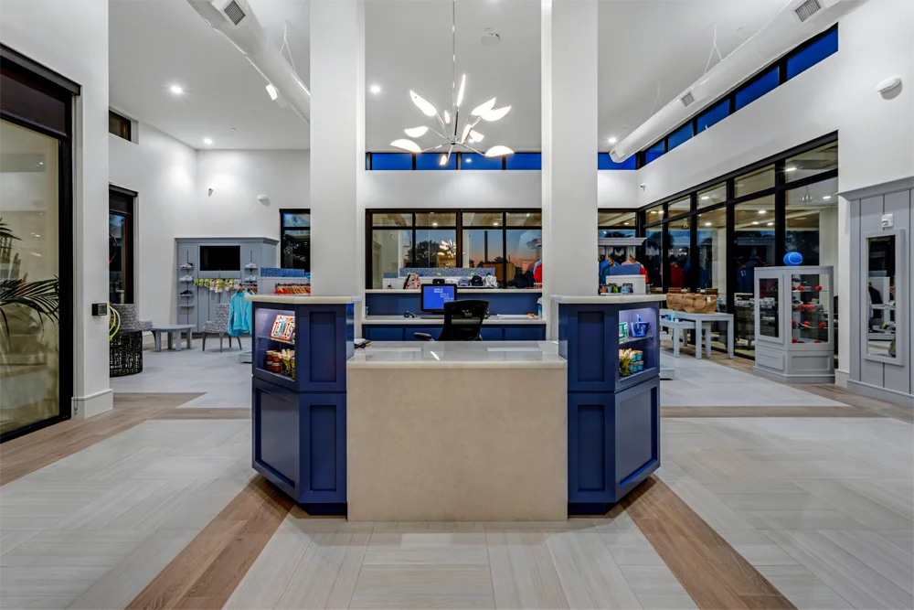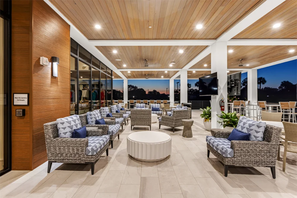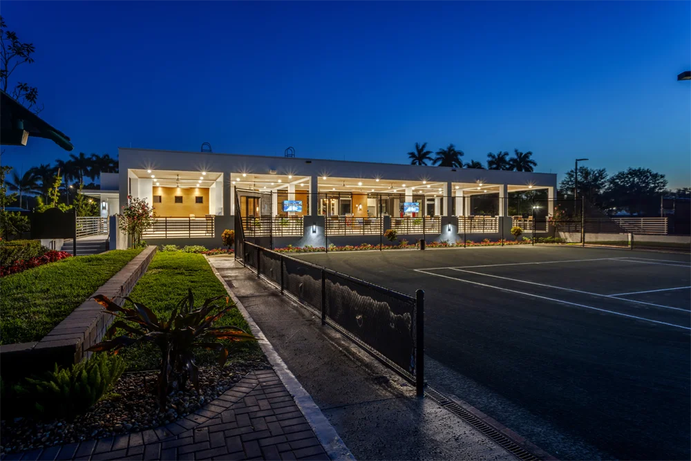 This project consisted of taking down the original tennis center and constructing a new state of the art Tennis Center. Project included racquet proshop, staff offices, restrooms and shows, and large outdoor veranda for seating and entertainment. The new tennis center allows members to view pickleball and tennis games for an elevated experience.